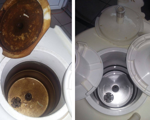 При установке бутыли происходит контакт иглы бутылеприёмника с внешней средой, откуда неизбежно попадают микробы и загрязнения. Внутри кулера создаются благоприятные условия для развития патогенной флоры, и в водопроводящих трубках и полостях образуются огромные колонии бактерий: рабочие поверхности покрываются слизью, представляющей реальную угрозу для Вашего здоровья.